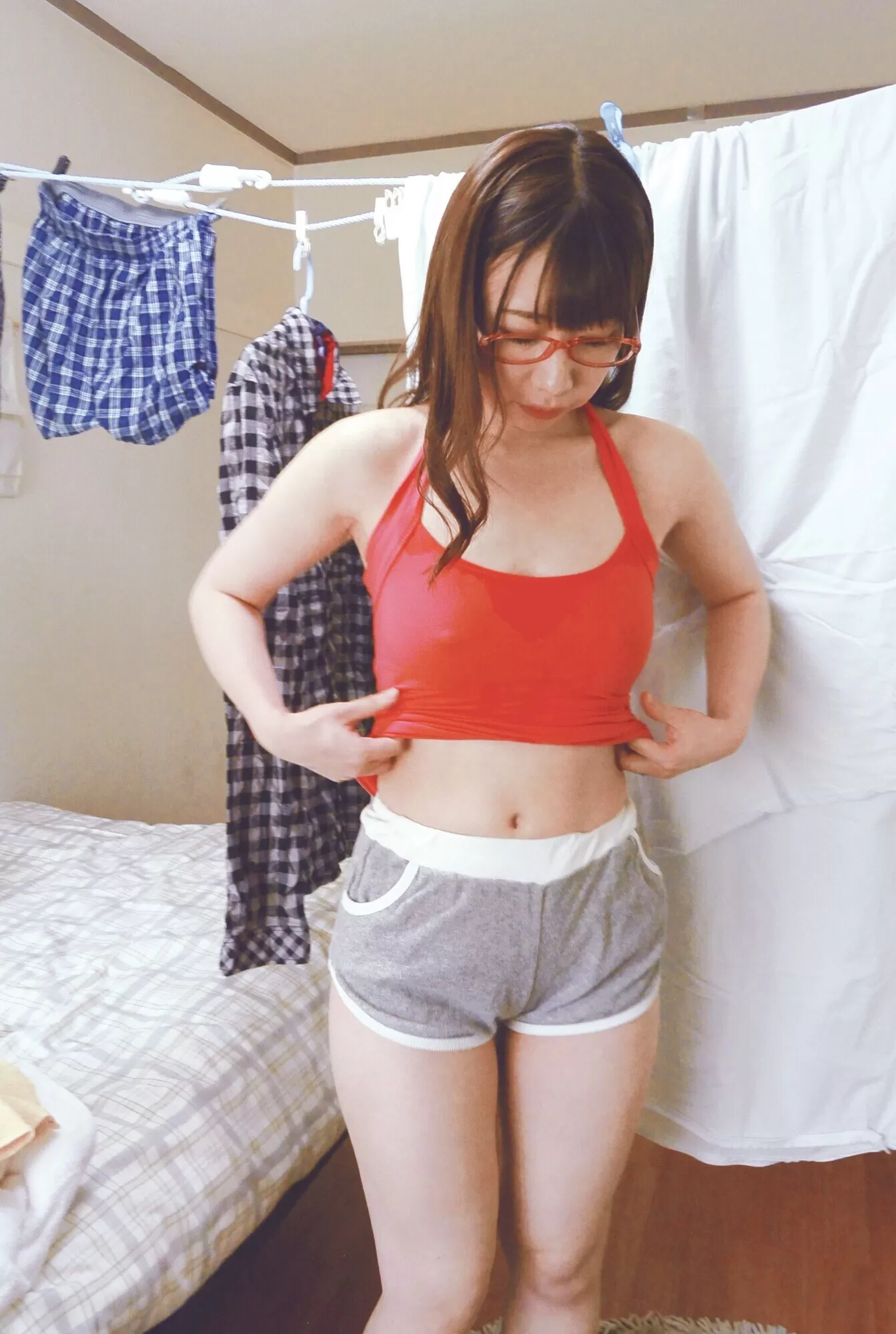 メガネ清楚美人な団地妻・大浦真奈美。巨乳、かわいい、性格は大人しい 控えめで貞淑な美人妻。ちょっと、無防備で天然な奥さん。夫は単身赴任中。エアコンが壊れてしまい、汗だくで超エロ薄着で困っているところに、悪いタイミングで、隣に引っ越してきた隣家の男性が挨拶に来て、そのまま玄関に出迎えた真奈美。キャミソールに短パンのエロい姿を見て・・・ / 団地妻の誘惑